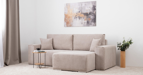Диван-кровать угловой Арно ТД 565 велюр Лаки 04 песочный, Vertical 910 молочно-серый, сборка на любую сторону