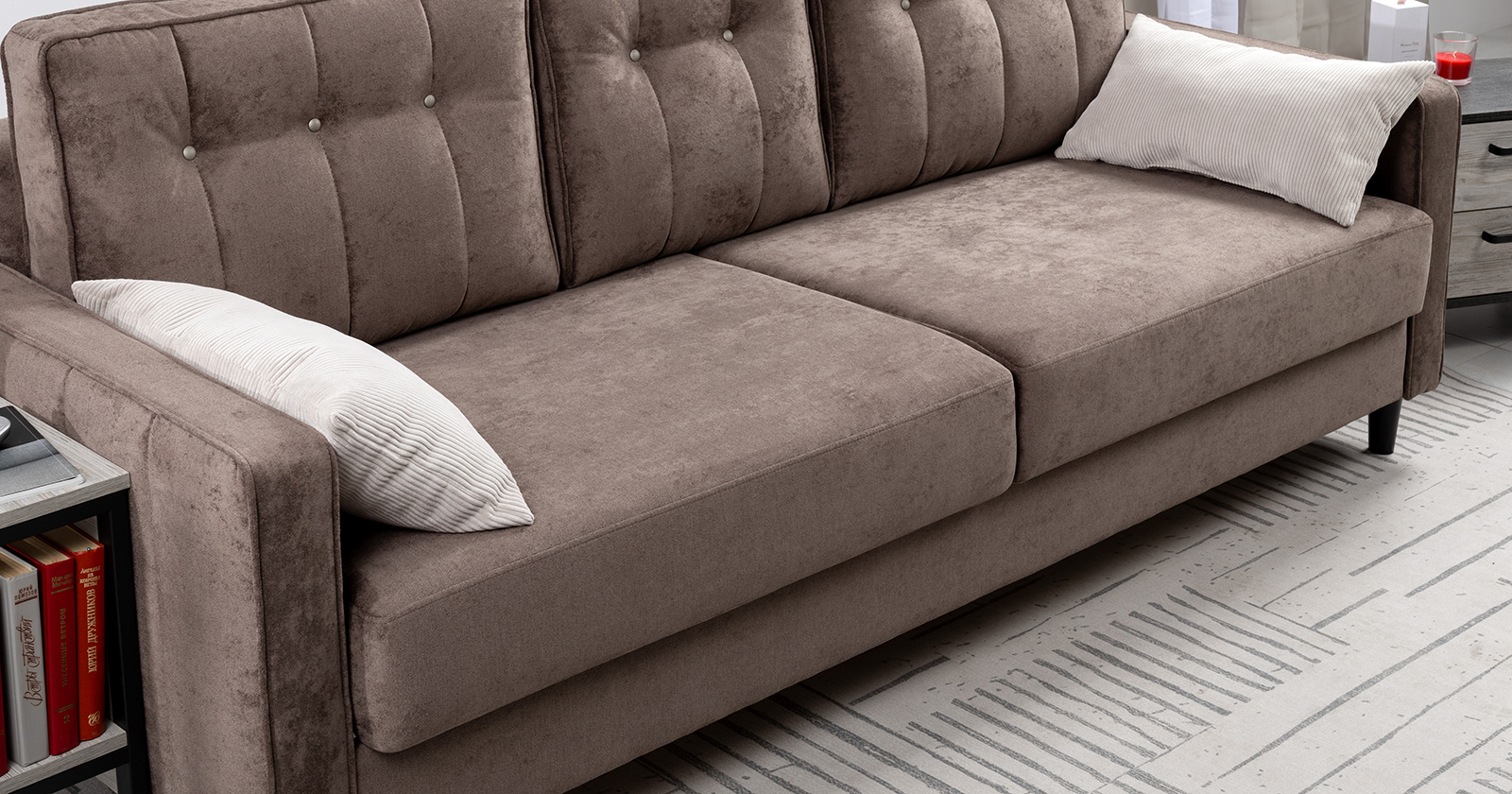 Объемные подушки дивана обеспечивают эргономичную посадку, а ровное спальное место - полноценный ночной отдых.