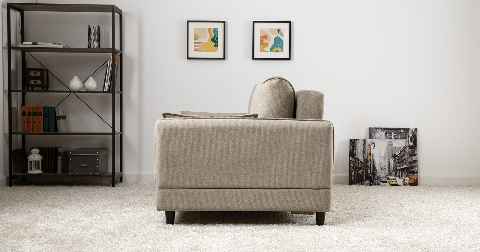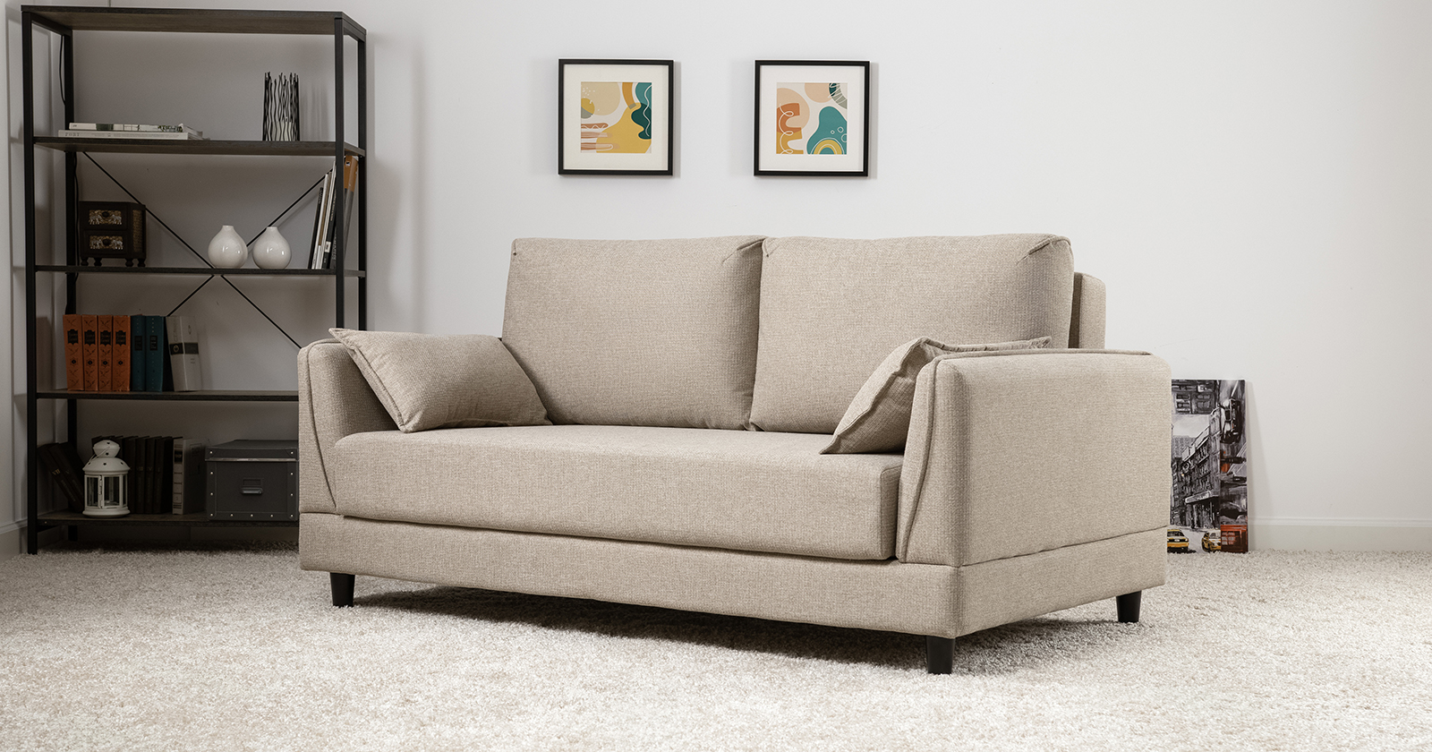 Лаконичный дизайн с деревянными ножками и узкими подлокотниками удачно дополнит не только интерьер гостиной, но и кабинета, и кухни. Кроме того, диван Макс позволяет организовать спальное место в ограниченном пространстве.