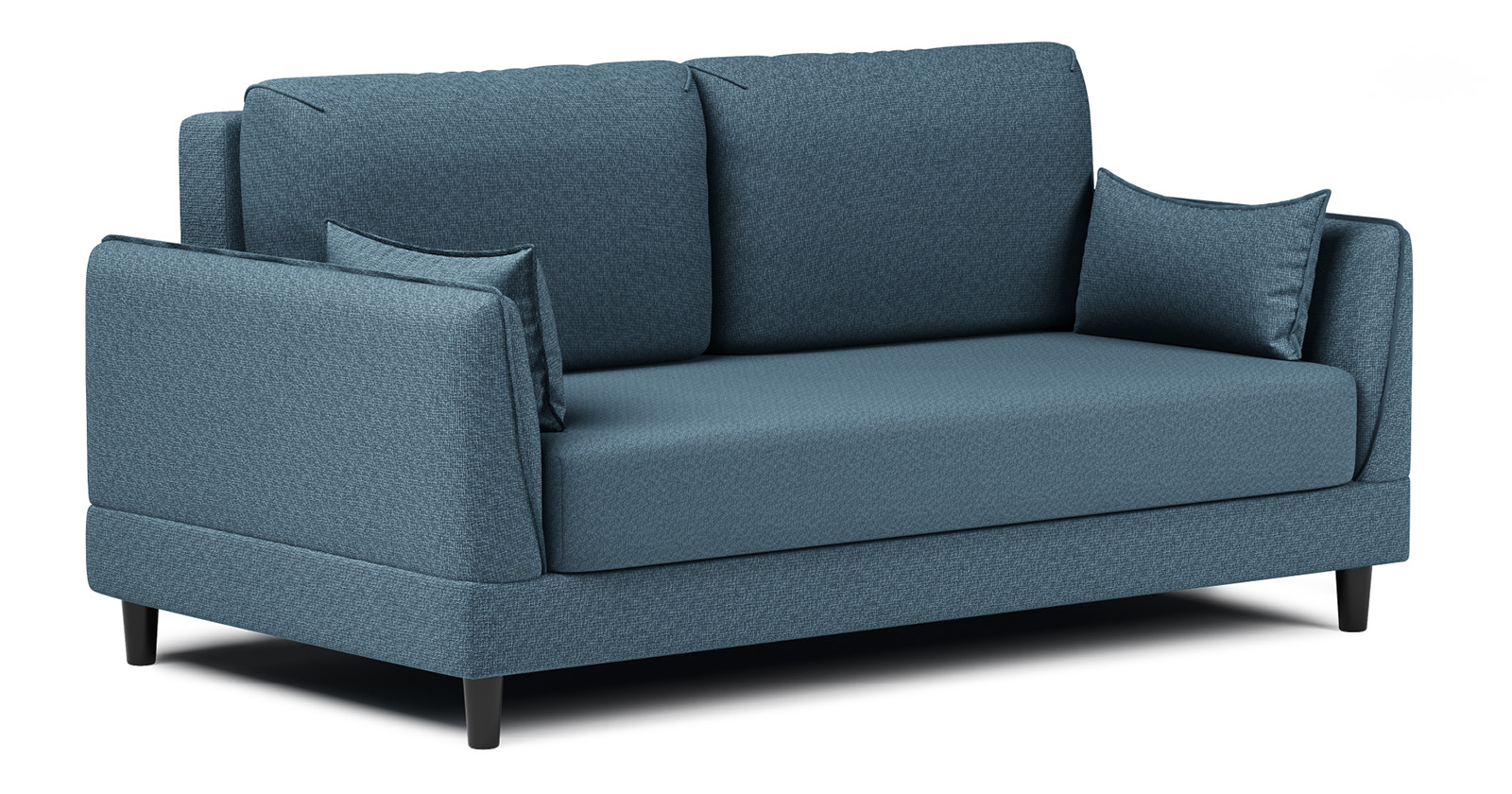 Лаконичный дизайн с деревянными ножками и узкими подлокотниками удачно дополнит не только интерьер гостиной, но и кабинета, и кухни. Кроме того, диван Макс позволяет организовать спальное место в ограниченном пространстве.