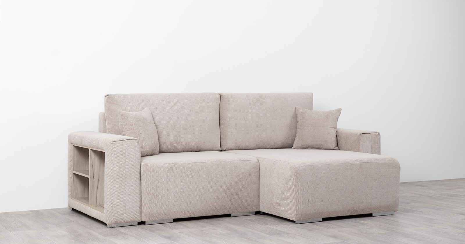 Диван-кровать угловой Оксфорд 710 композиция 1, шенилл Muza 04 светло-бежевый, модульная система, сборка на любую сторону