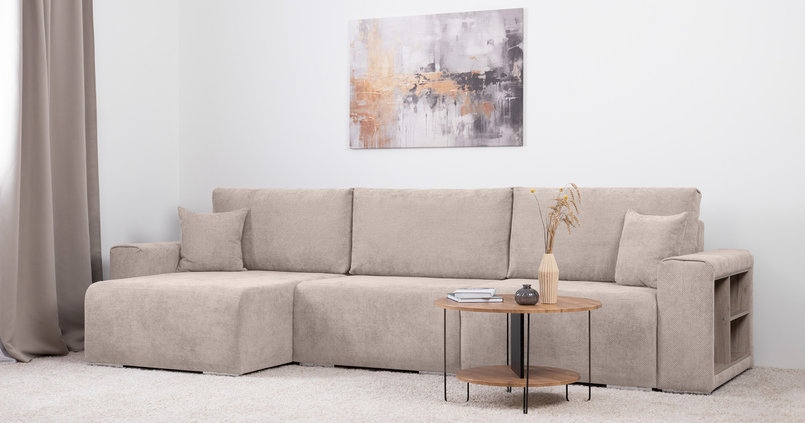 Диван-кровать угловой Тэдди 1502 композиция 2, букле Pique 006 бежевый, модульная система, сборка на любую сторону