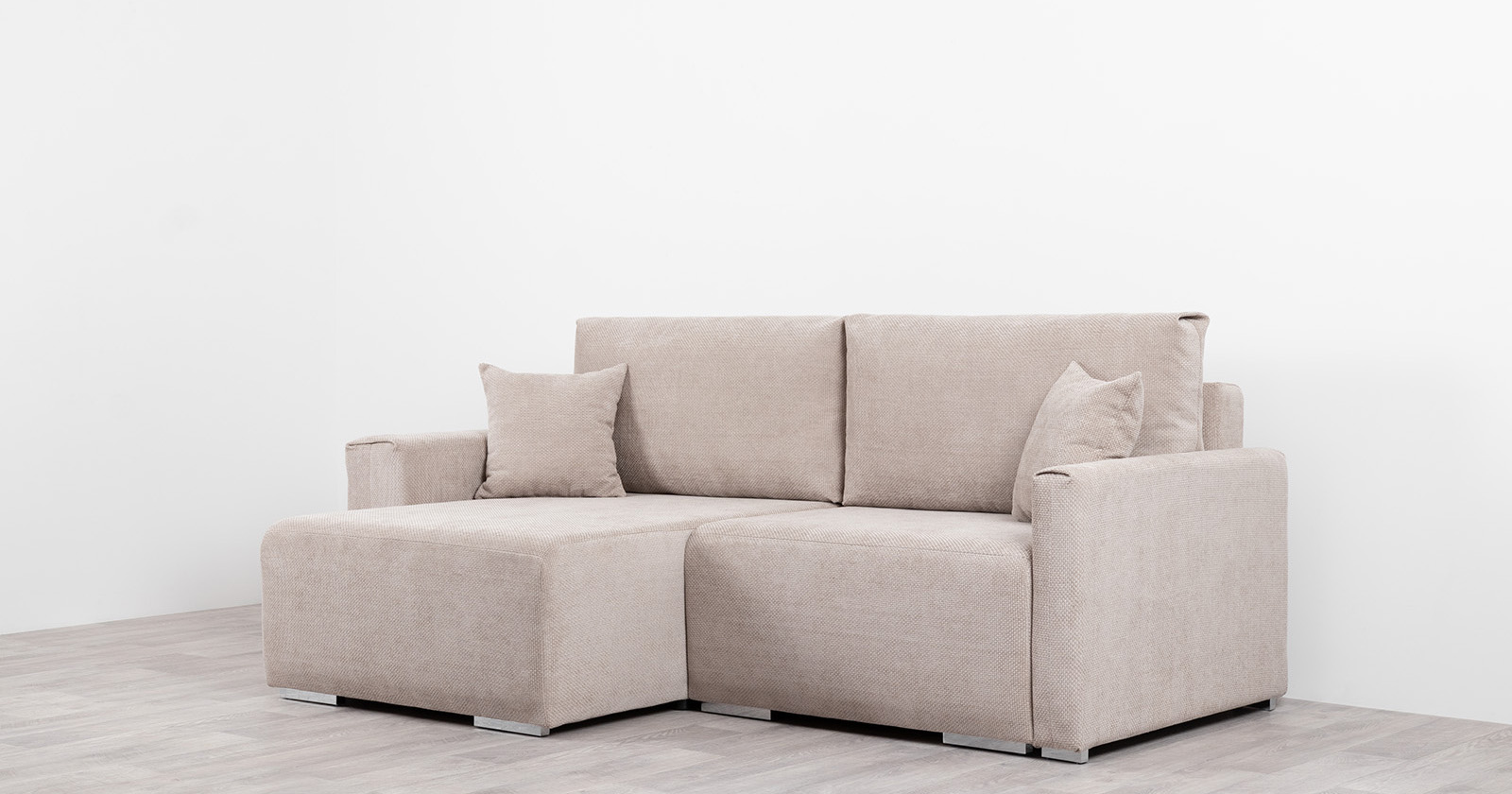Диван-кровать угловой Тэдди 1502 композиция 2, букле Pique 006 бежевый, модульная система, сборка на любую сторону