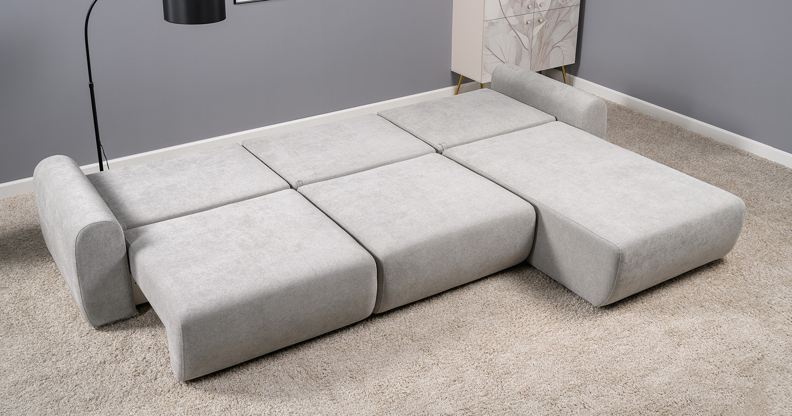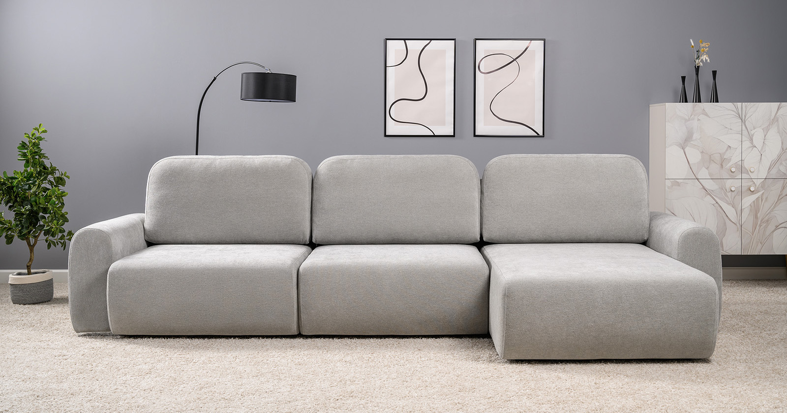 Диван-кровать угловой Тэдди 1506 композиция 2, букле Pique 011 серый, модульная система, сборка на любую сторону