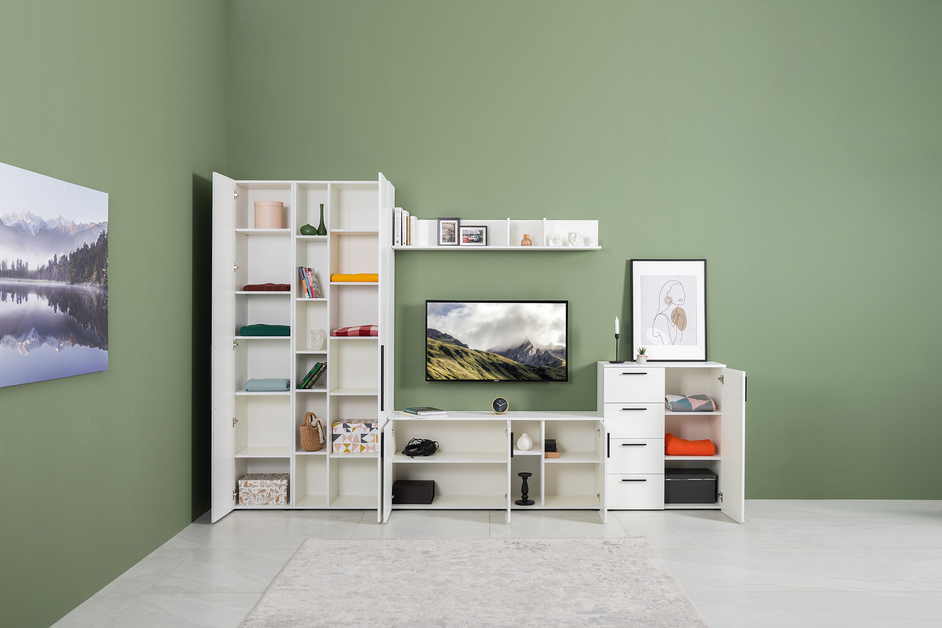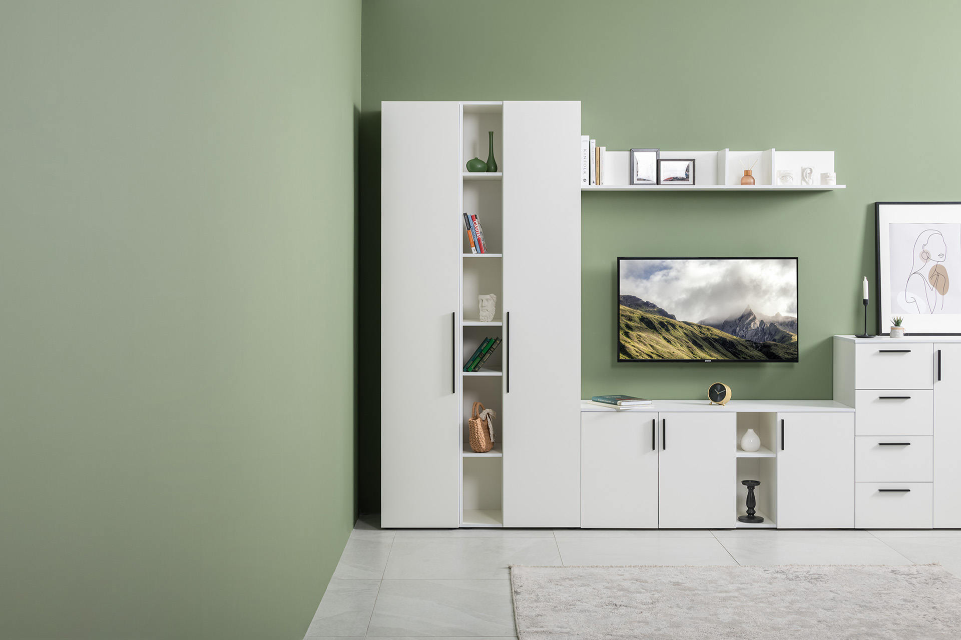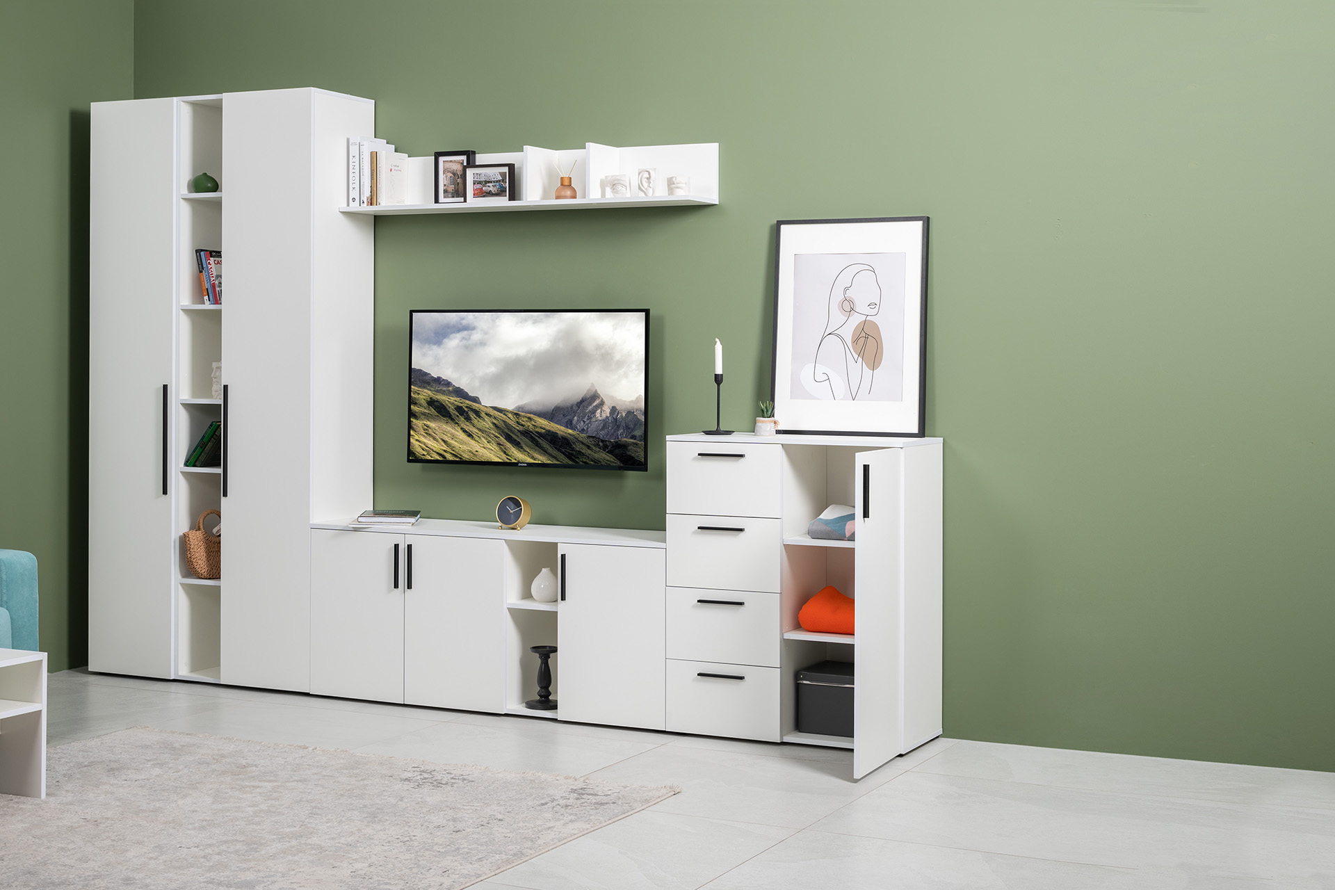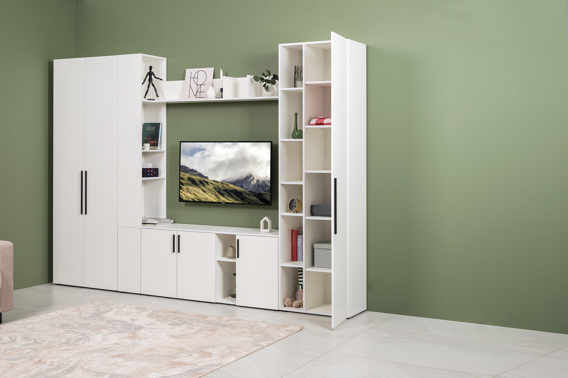 Гостиная Эйр композиция 2 белый PE шагрень, собирается на любую сторону