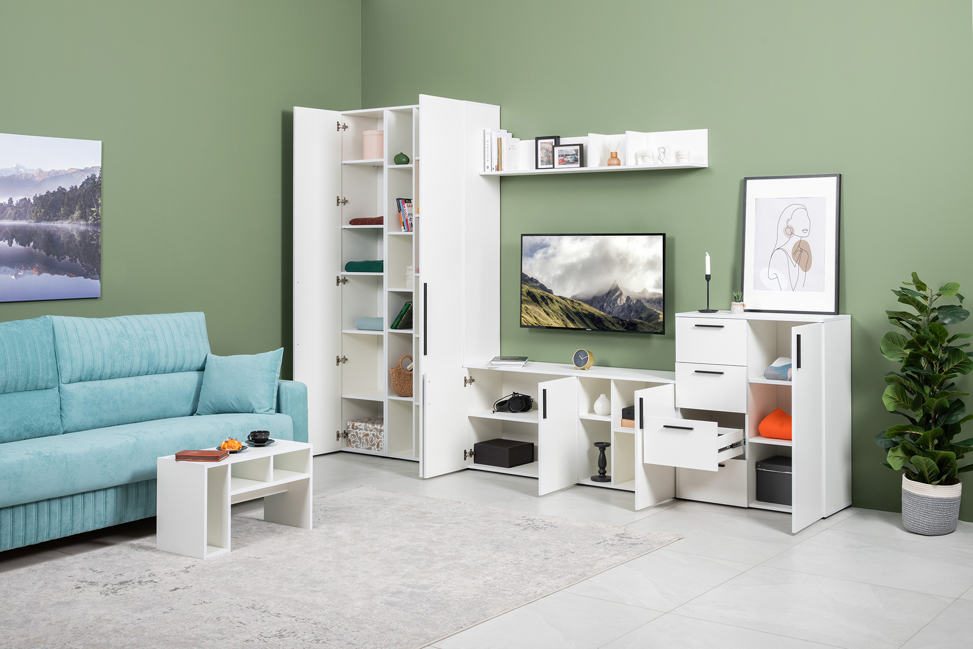 Гостиная Эйр доступна в двух цветовых решениях: белый и графит.