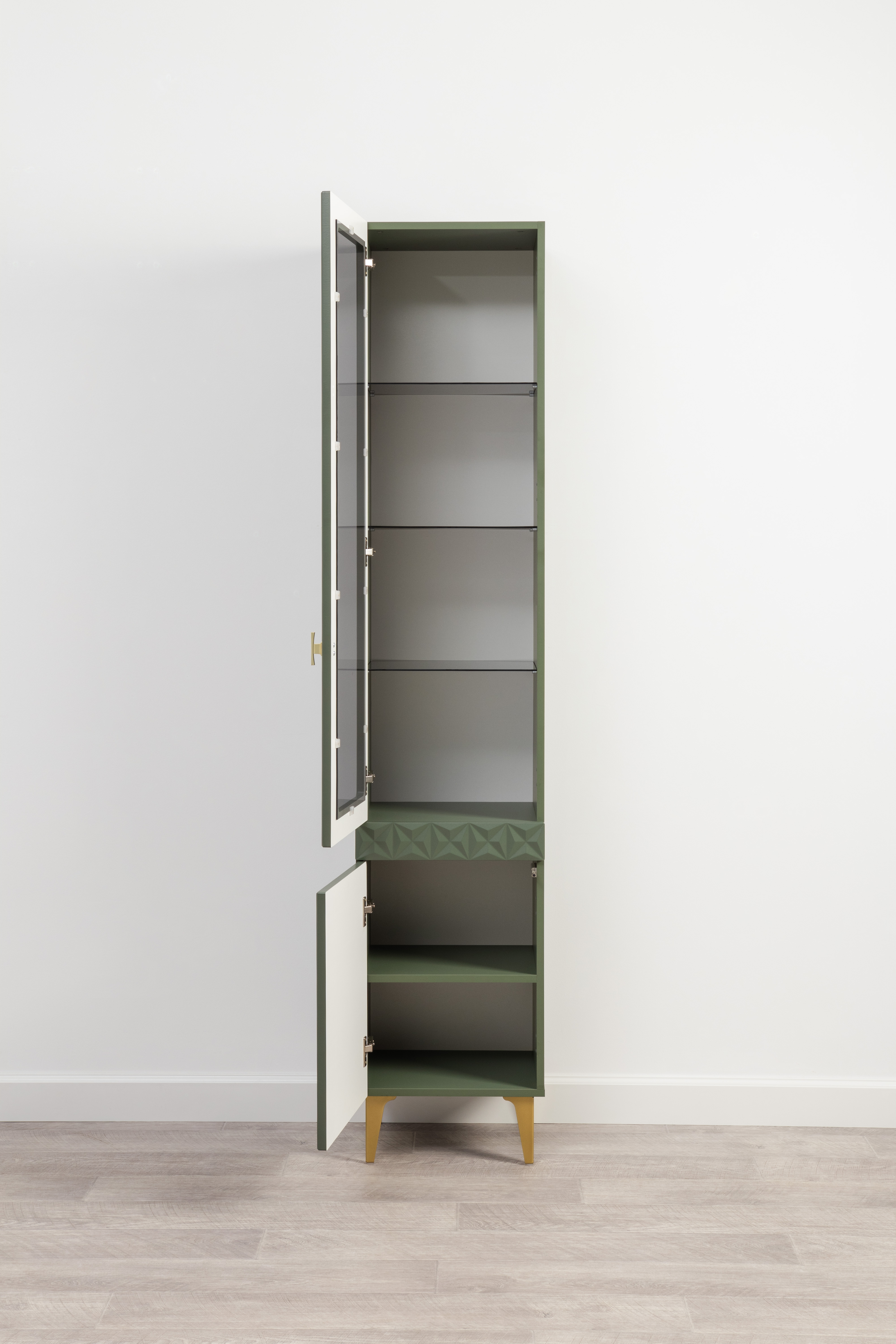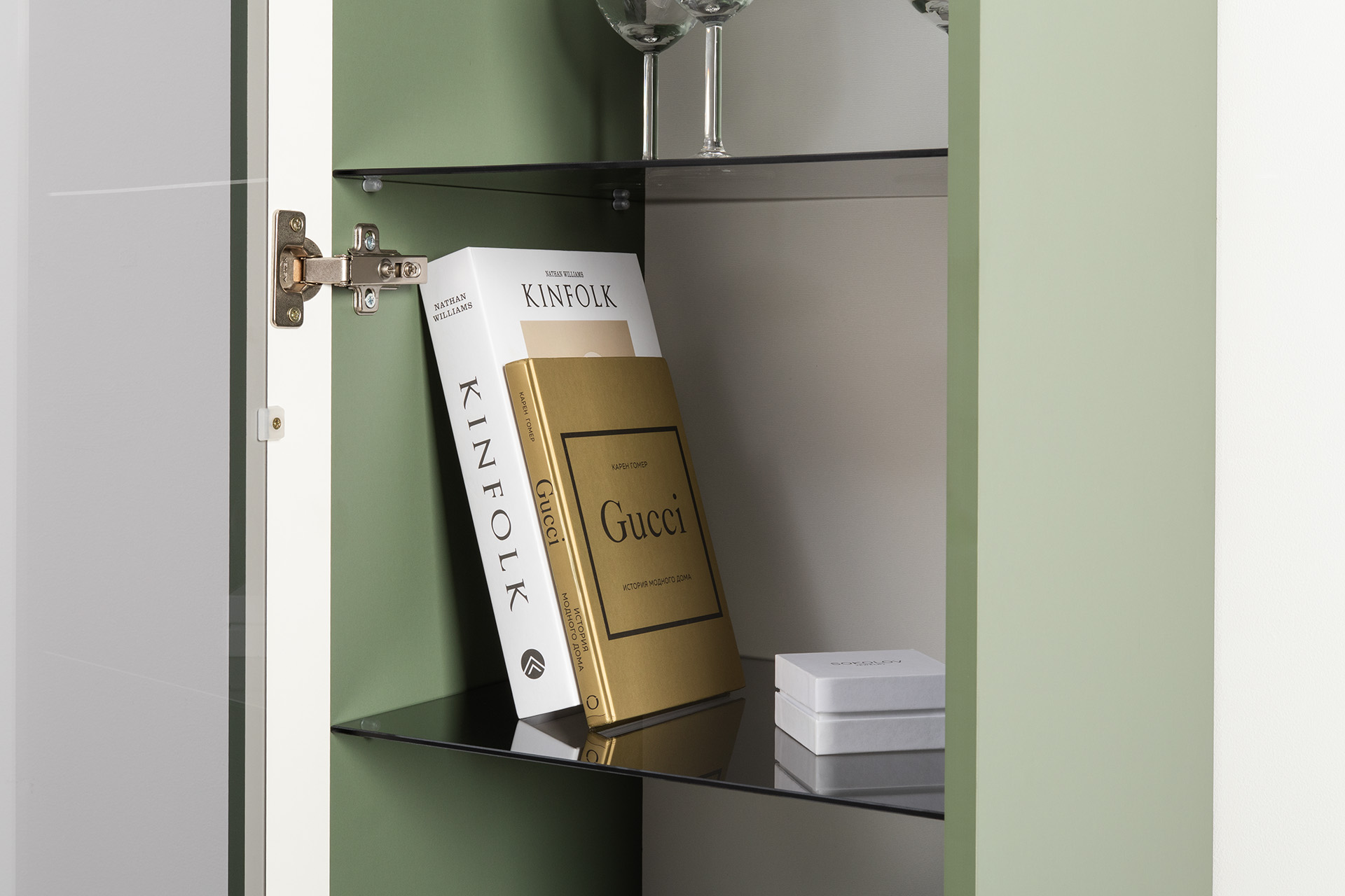 В коллекции представлены три типа витрин с тонированным закалённым стеклом, которые придают пространству лёгкость и свет. «Марион» — идеальное сочетание традиций и актуального дизайна в каждой детали.