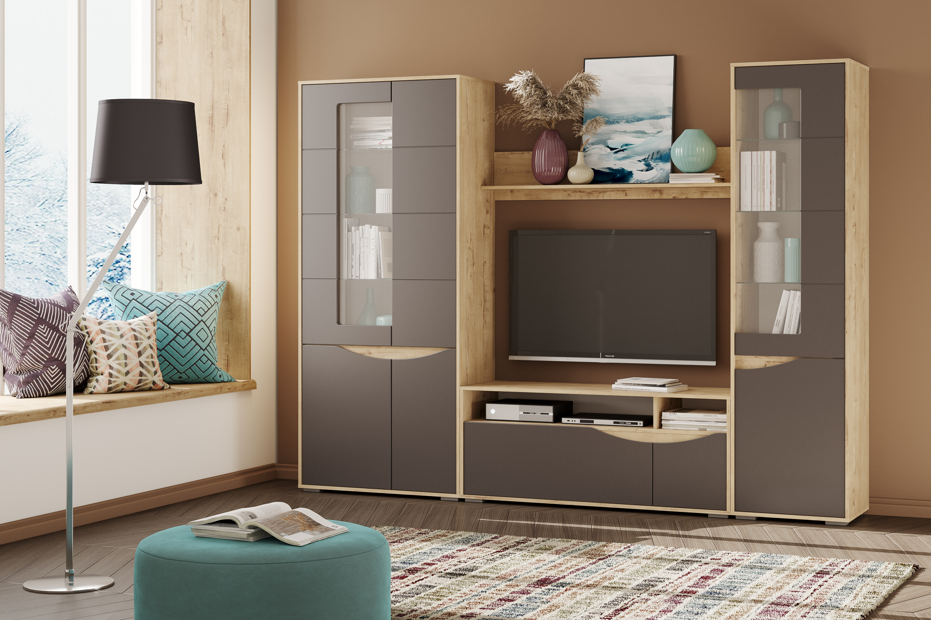 Гостиная Монэ композиция 2 дуб бунратти, софт графит