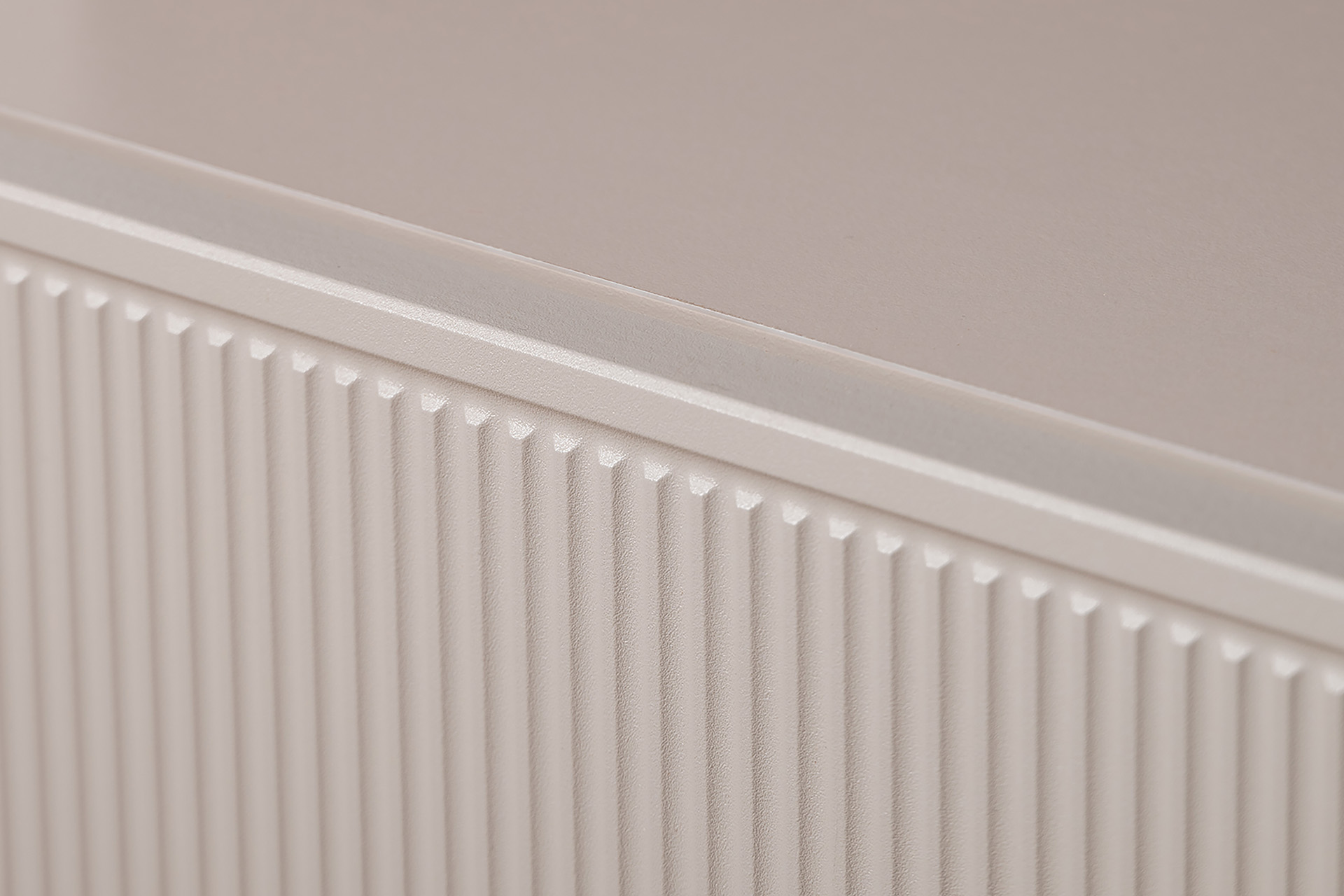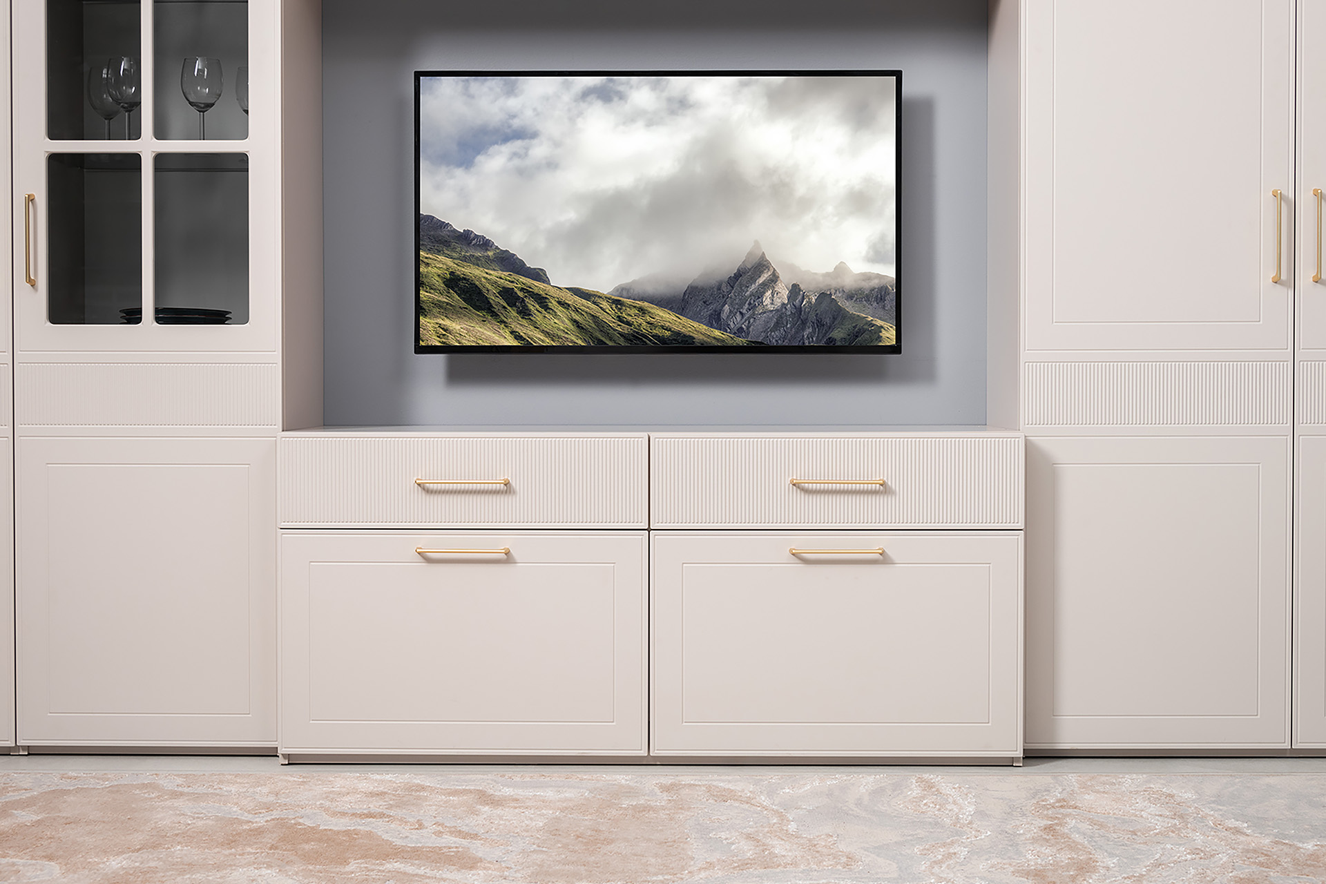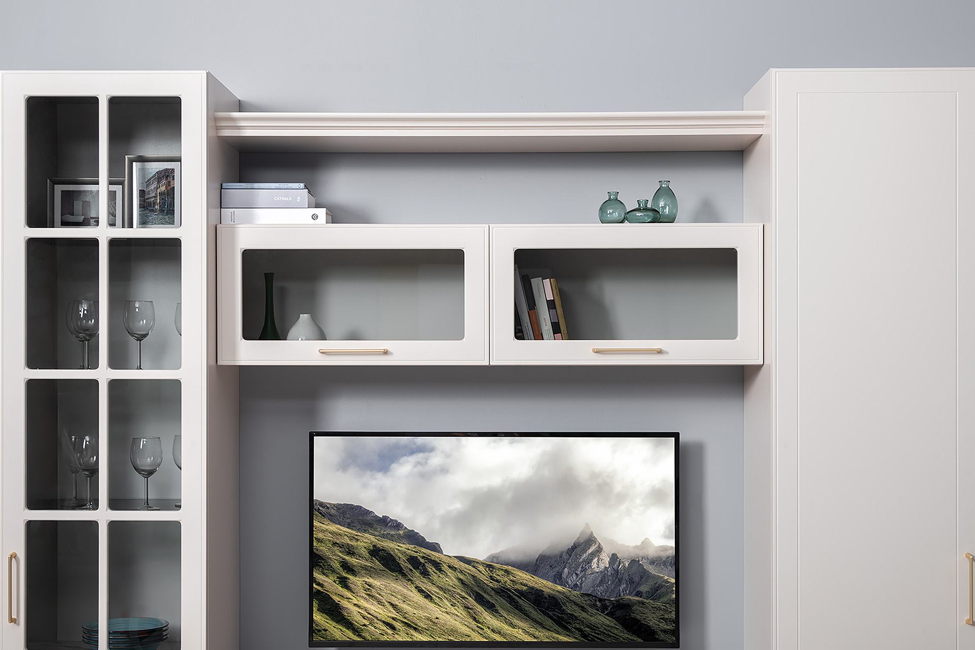Гостиная Ричфорд композиция 1 с карнизами, кашемир 5981 BS, моно керамика D166-2 ПВХ, белый PE шагрень (собирается на любую сторону)