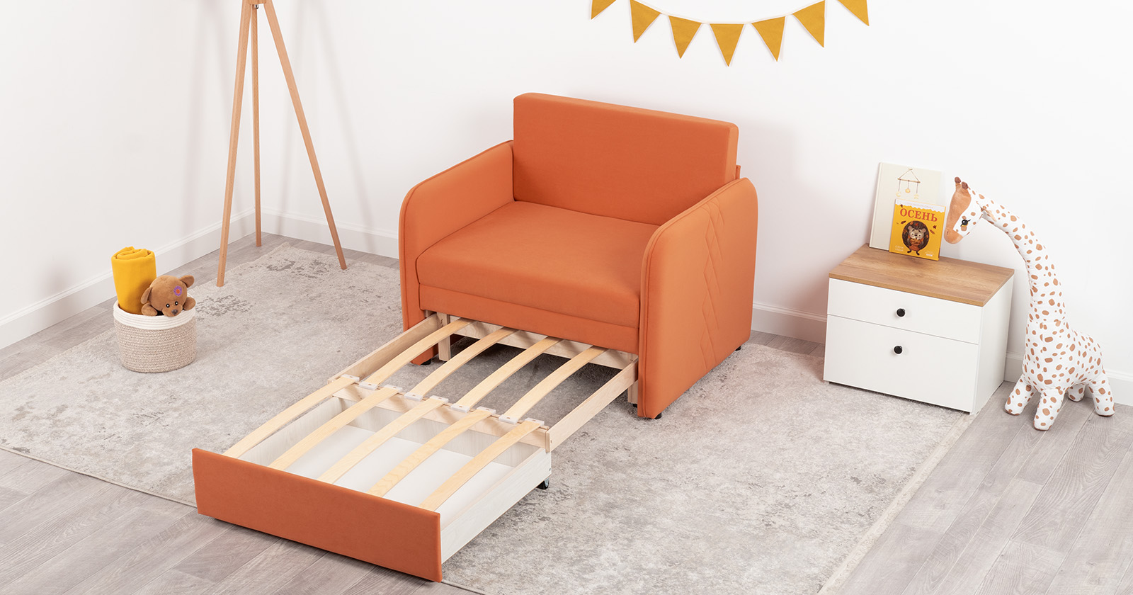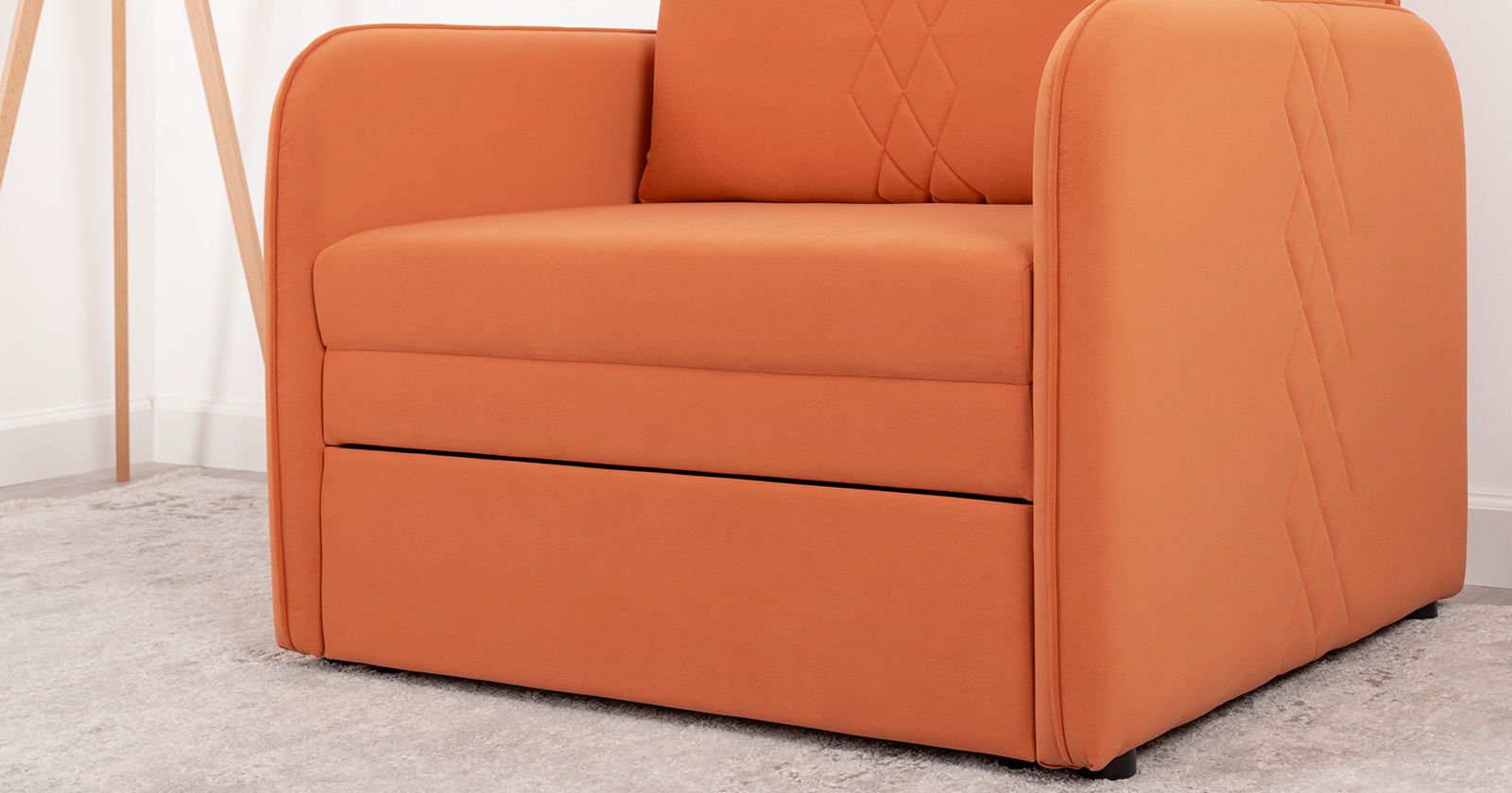 Стильный компактный диван для детской и гостиной. При своих скромных размерах он трансформируется в полноценное спальное место для детей и подростков. Лаконичный дизайн в виде декоративной стежки подчеркивает фактуру велюра, а небольшие размеры позволят разместить его в любом пространстве.