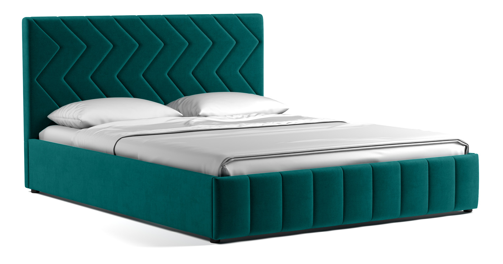 Кровать Милана 160 велюр сине-зеленый с ортопедическим основанием и подъемным механизмом