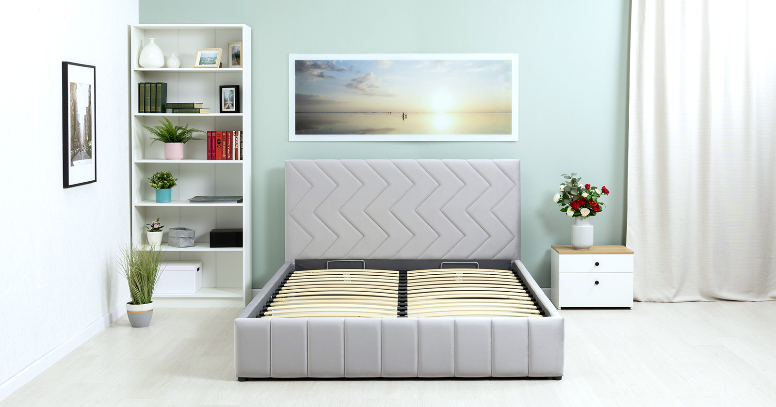 Кровать Милана 180 велюр светло-серый с ортопедическим основанием и подъемным механизмом
