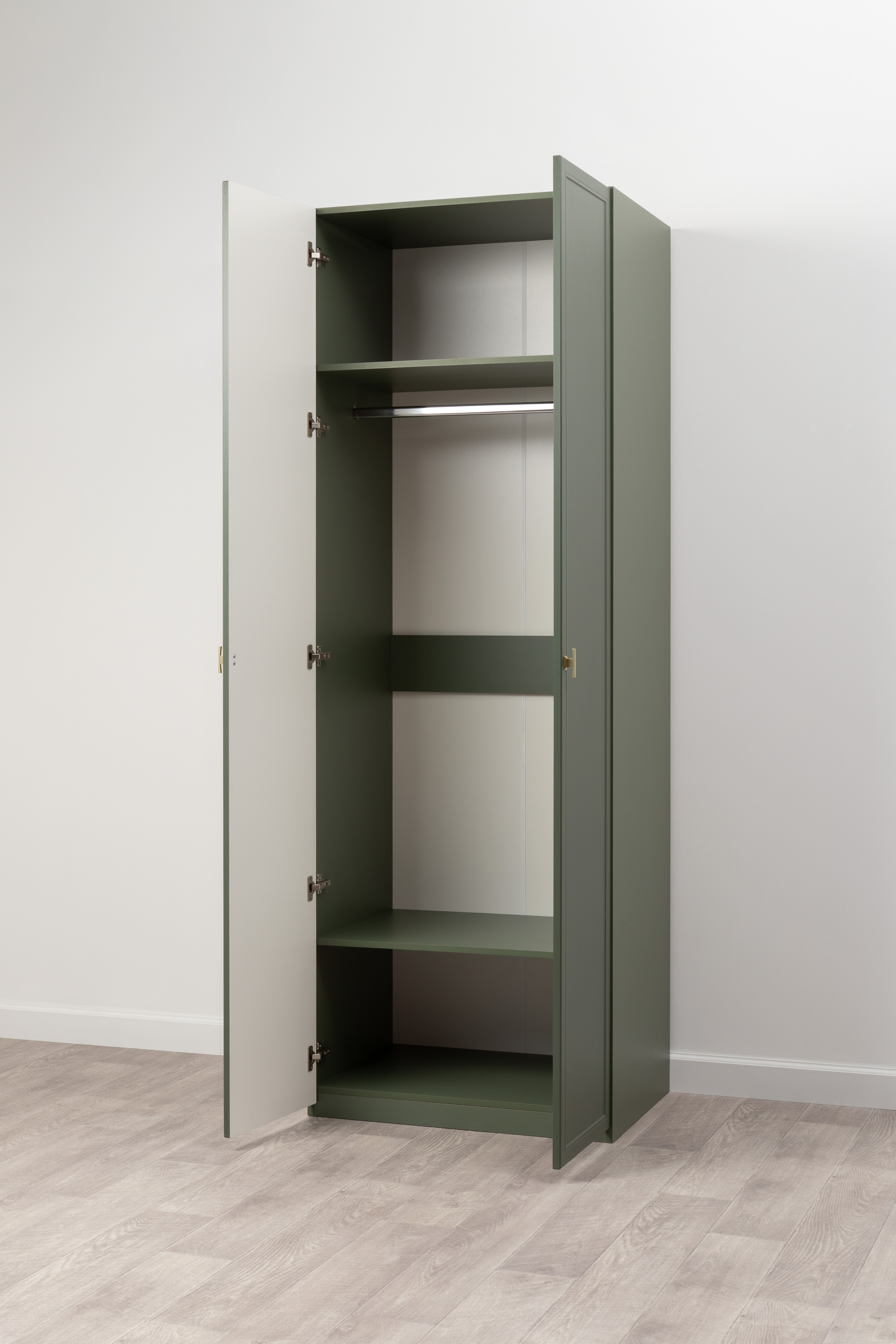 Шкаф двустворчатый Марион 16.340.02 дымчатый зеленый K521, олива шагрень AG 1050 ПВХ