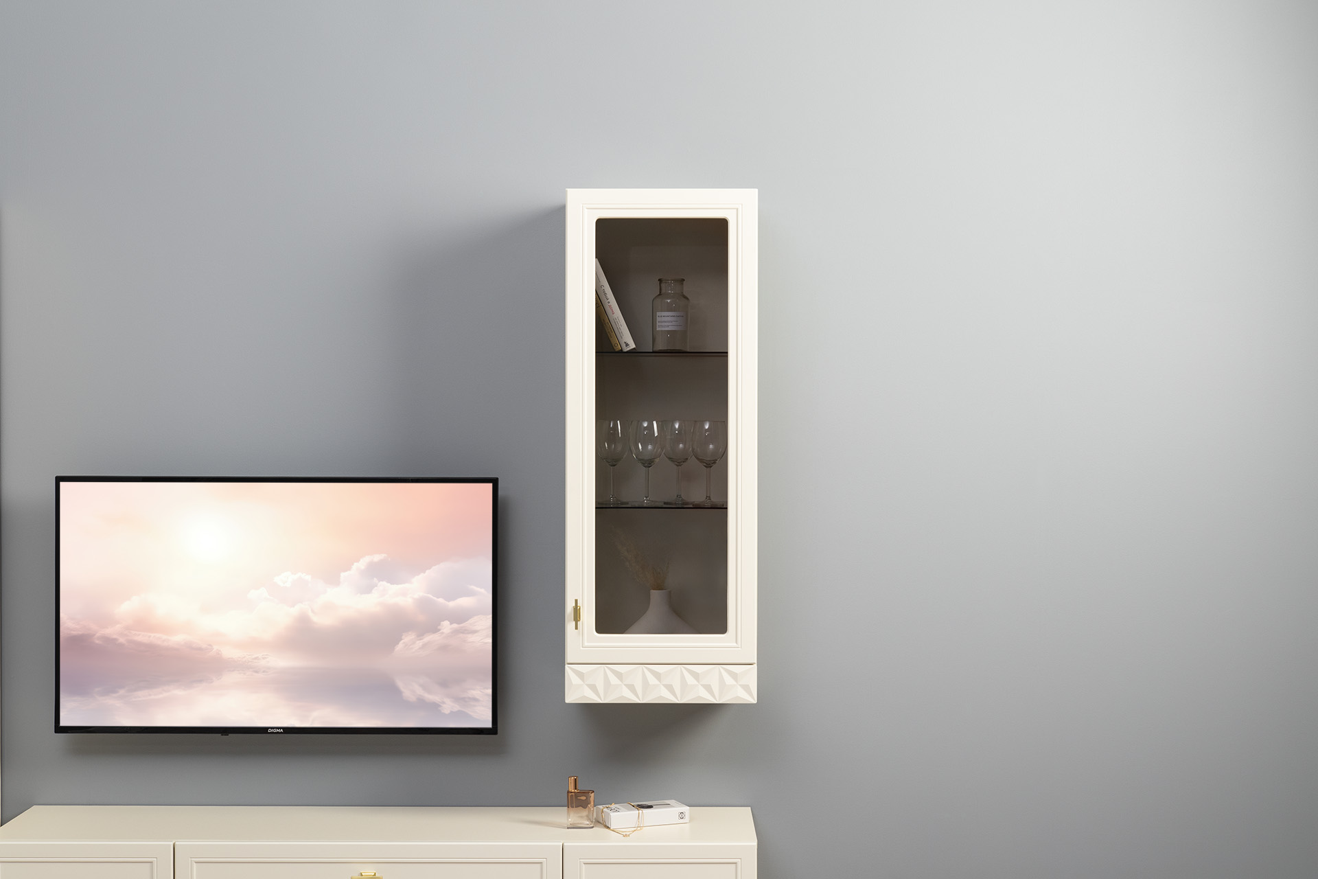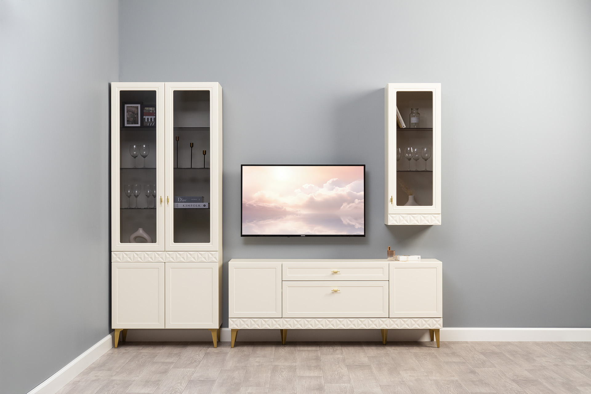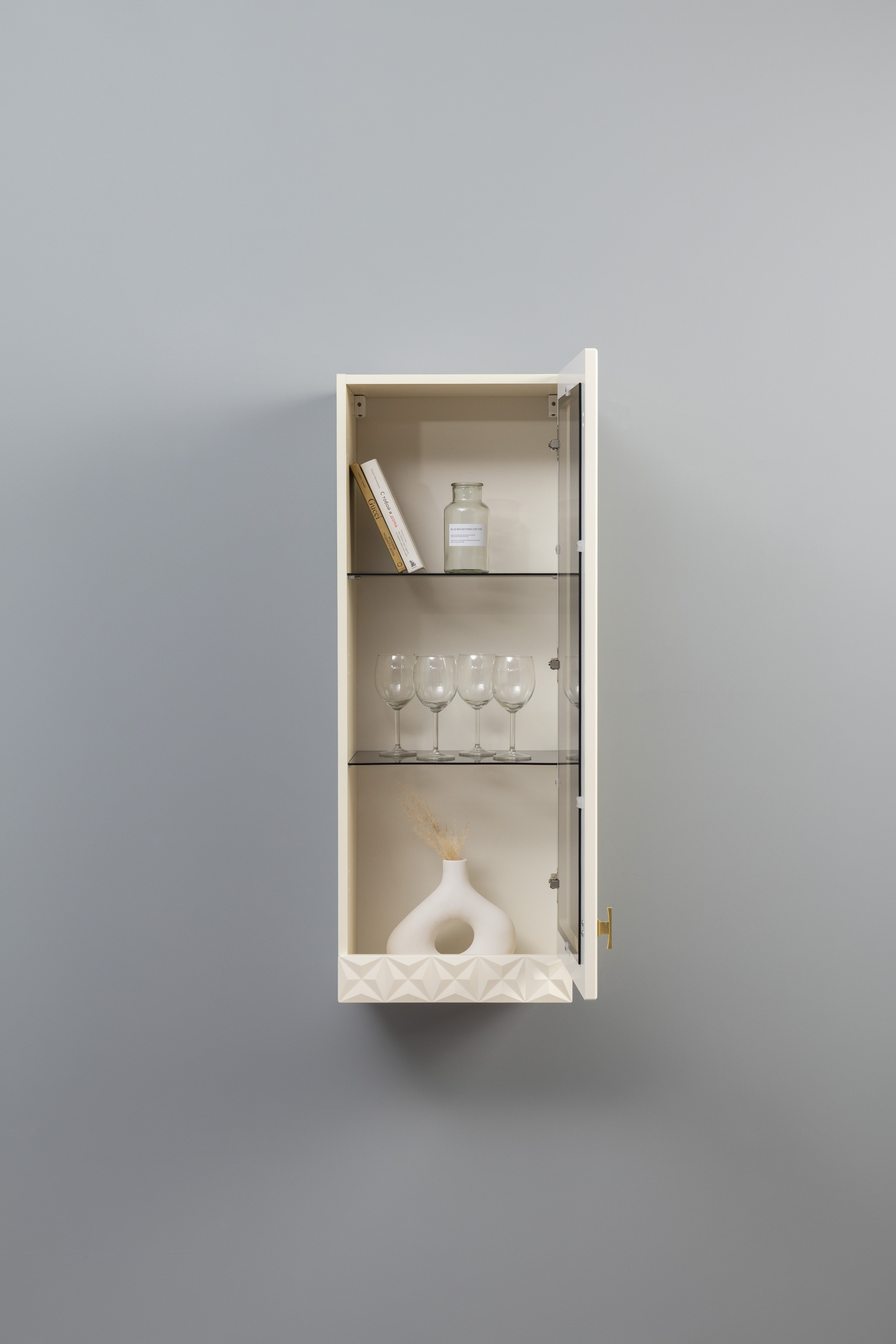 В коллекции представлены три типа витрин с тонированным закалённым стеклом, которые придают пространству лёгкость и свет. «Марион» — идеальное сочетание традиций и актуального дизайна в каждой детали.