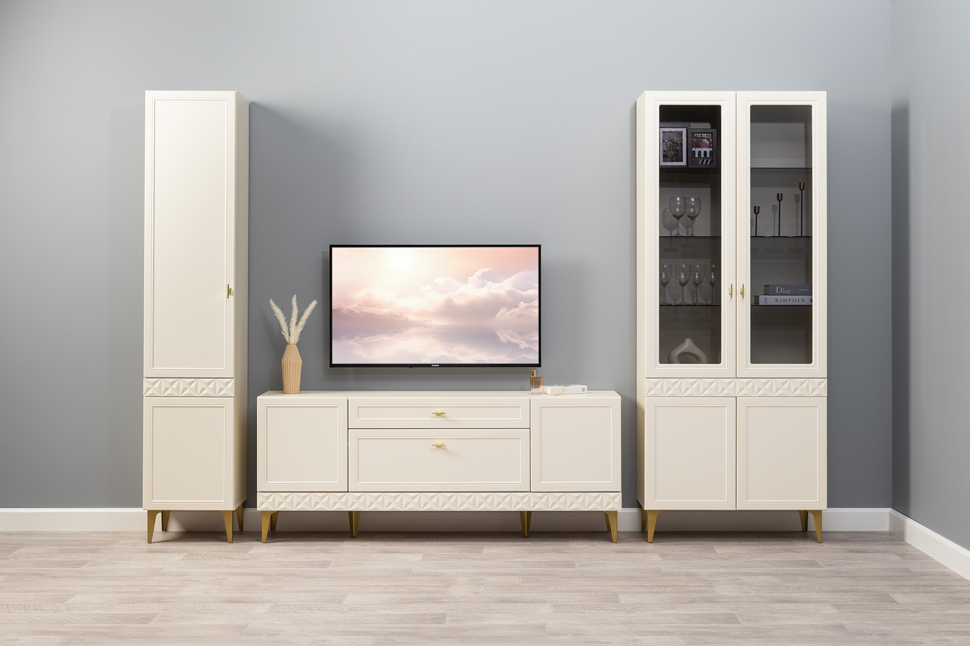 В коллекции представлены три типа витрин с тонированным закалённым стеклом, которые придают пространству лёгкость и свет. «Марион» — идеальное сочетание традиций и актуального дизайна в каждой детали.