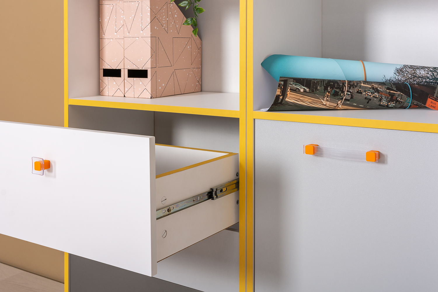 Модули универсальны, подойдут для детской / подростковой комнаты, помогут организовать рабочее место или домашний кабинет. Наша коллекция создает лёгкую и светлую атмосферу позитива, заряжает на новые креативные идеи и планы.